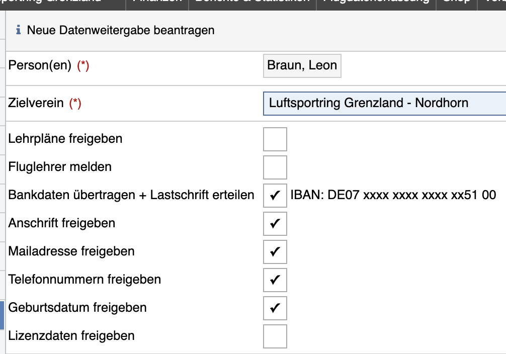 (ganz wichtig: 'Bankdaten übertragen').